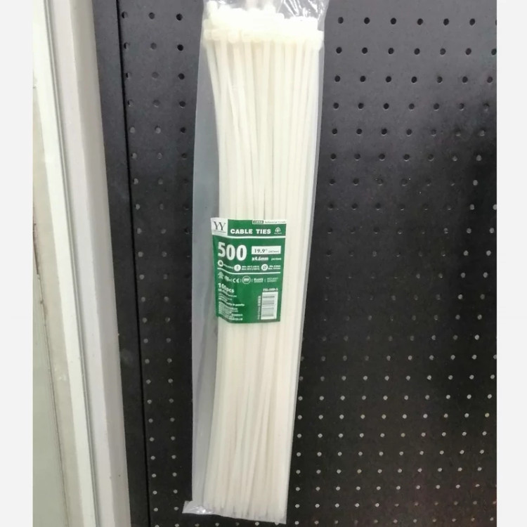 بست کمربندی 500mm*4/6mm صد عددی، برند YY، ساخت تایوان، کیفیت فوق العاده عالی، دارای استاندارد ها و گواهینامه های CE,ROSH,DNV-GL, ISO14001,ISO9001 , آستانه تحمل فشار 22کیلوگرمی، مقاومت دمایی 40_ الی 85 درجه سانتی گراد،در دو رنگ سفید و مشکی.